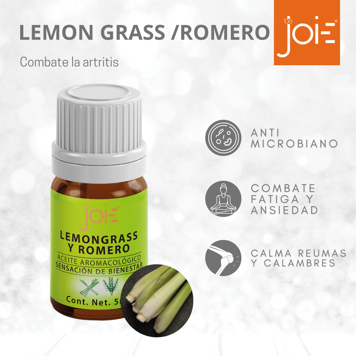 El LemonGrass es una planta extendida en la india; tiene beneficios antibacterial y antimicrobiano , ayuda a mitigar el crecimiento de bacterias o microbios en la piel. Es muy efectivo para reducir poros; combate la fatiga, la ansiedad, es ideal para aromatizar la casa generando un estado de animo. Es calmante de calambres y fuertes dolores de artritis y reumas.